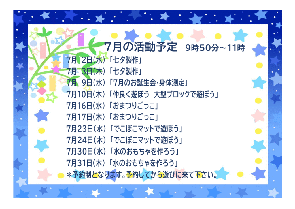 こうまの会7月の予定